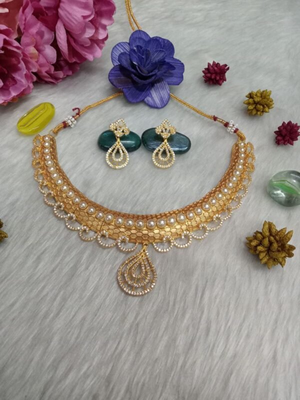 Necklace – Gold Plated AD Necklace with Earrings SCA205044