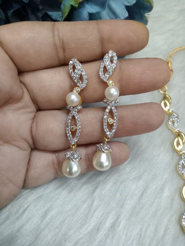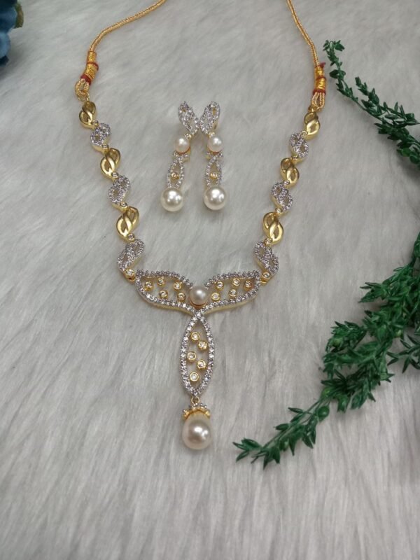 Premium Quality Gold Plated Celebrity Choice Hand Crafted AD Necklace with Earrings by Shivay Creative Arts