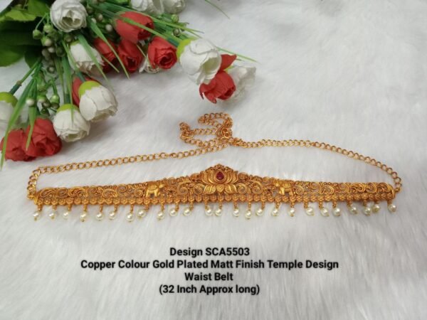 Waist Belt-Copper Color Gold Plated Temple Design Waist Belt SCA5503