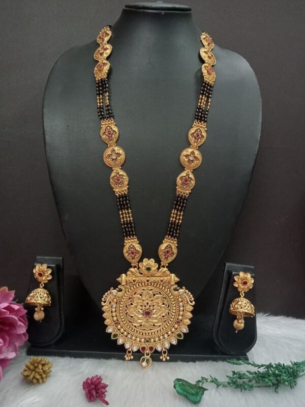 Premium Quality Gold Plated Copper Rajwadi 4 line long Hand Made Designer Mangalsutra with Jhumka (Approx Length 44 Inch) by Shivay Creative Arts