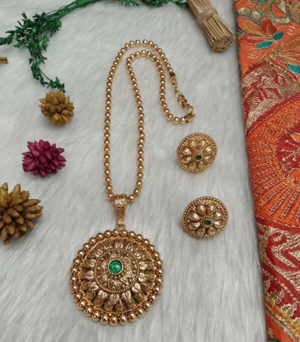 Chain Pendent – Gold Plated Copper Rajwadi Chain Big Pendent Set SCA95060