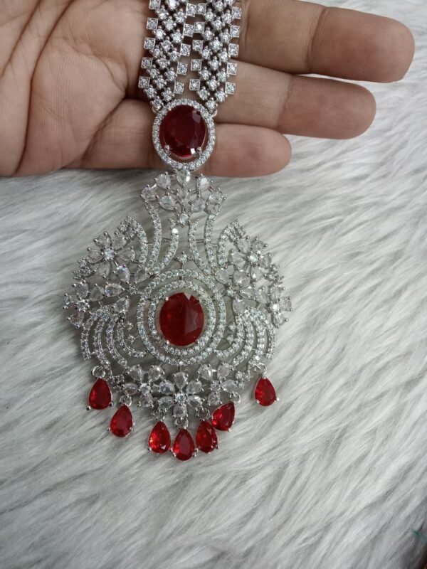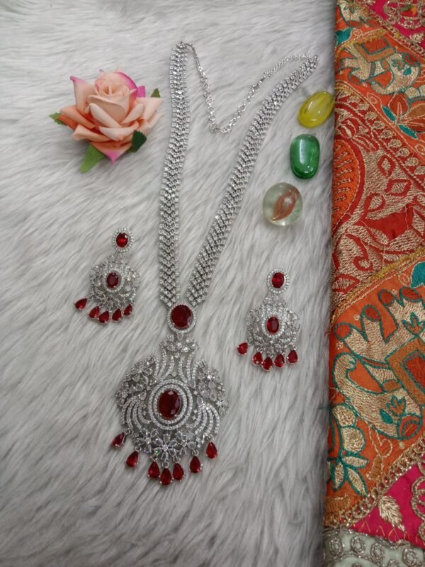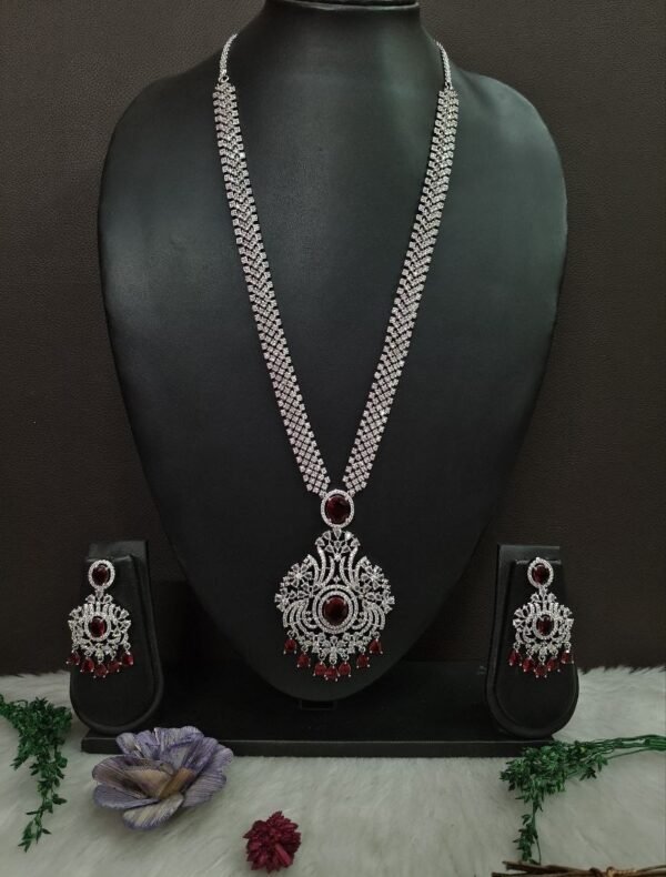 Necklace – Silver Plated AD Rhodium Polish long Rani Haar Necklace SCA27001