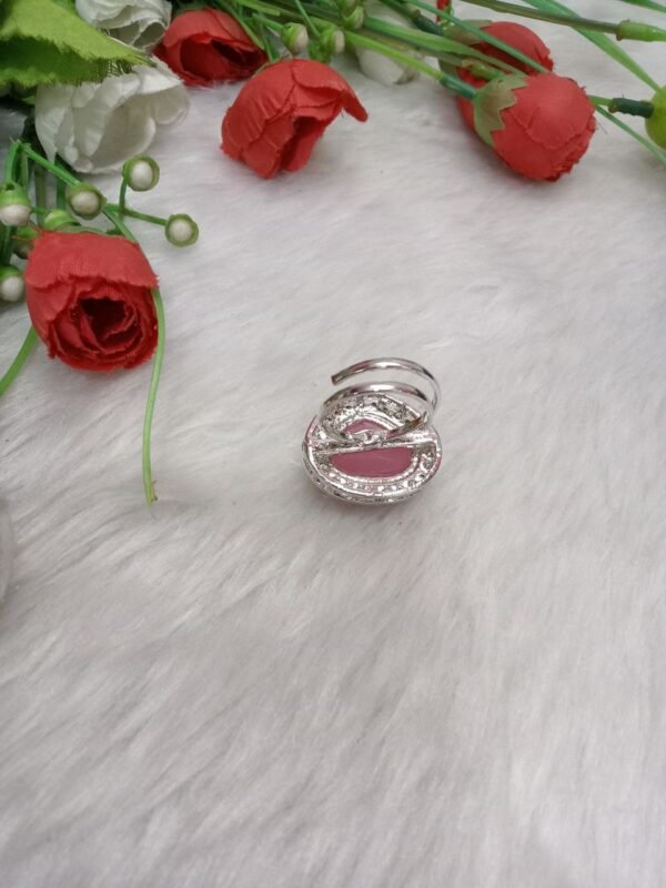 Rings -Silver-Plated Monalisa & Glass Stone Small Size Adjustable Ring SCA2002