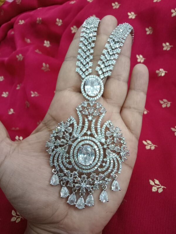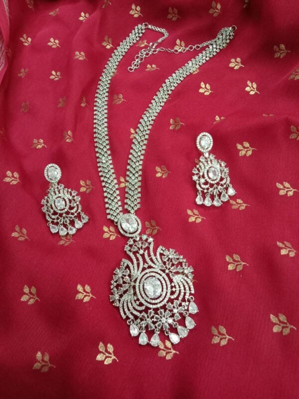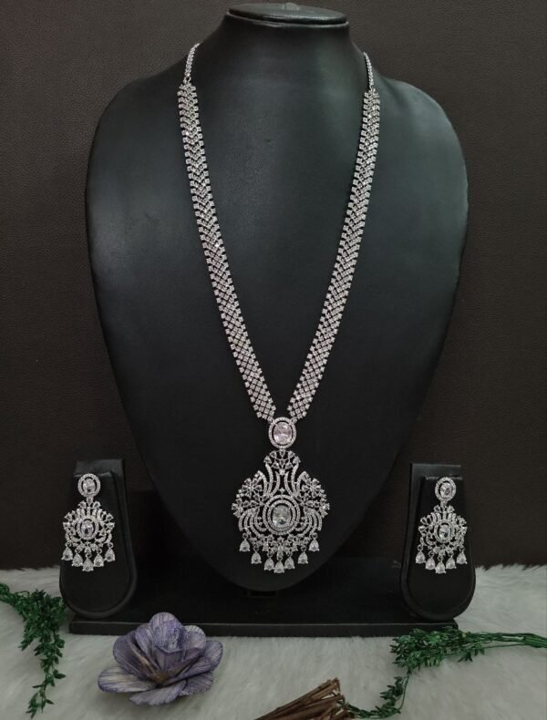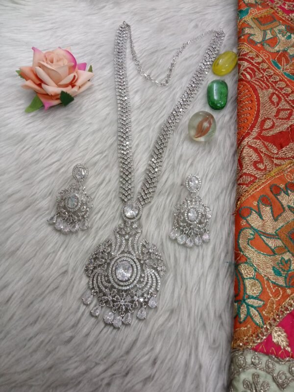 Necklace – Silver Plated AD Rhodium Polish long Rani Haar Necklace SCA27001