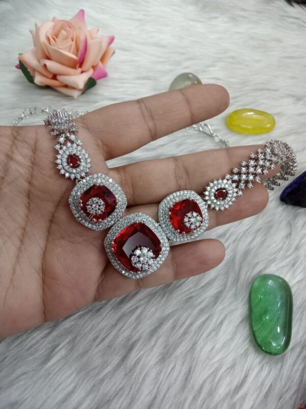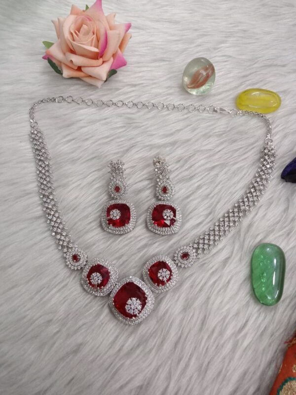 Necklace : Silver Rhodium Polish AD Necklace with Earrings SCA185070