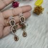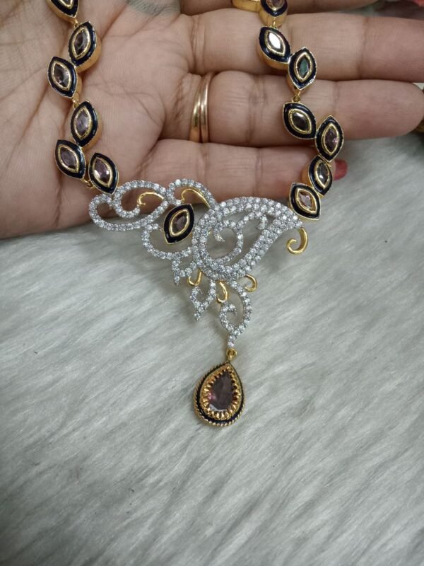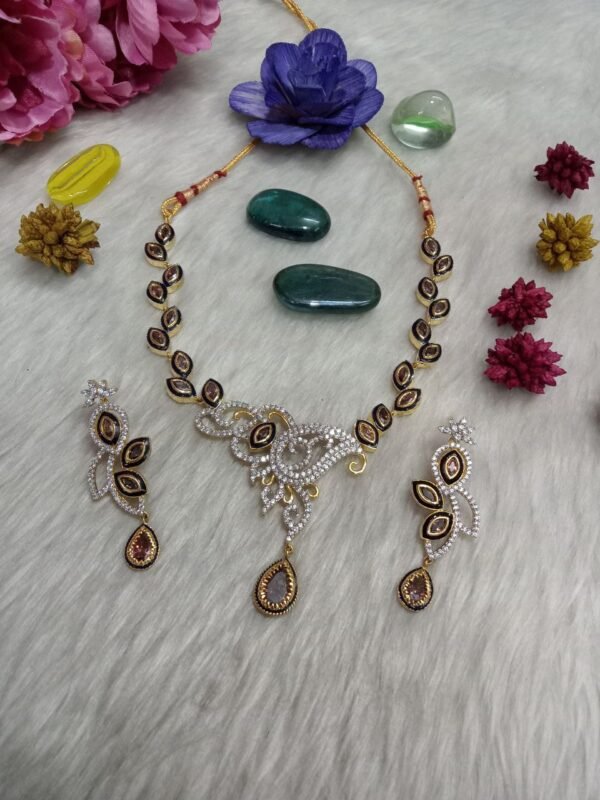 Necklace – Gold Plated Wine Crystal AD Stone Necklace with long Earrings SCA205037